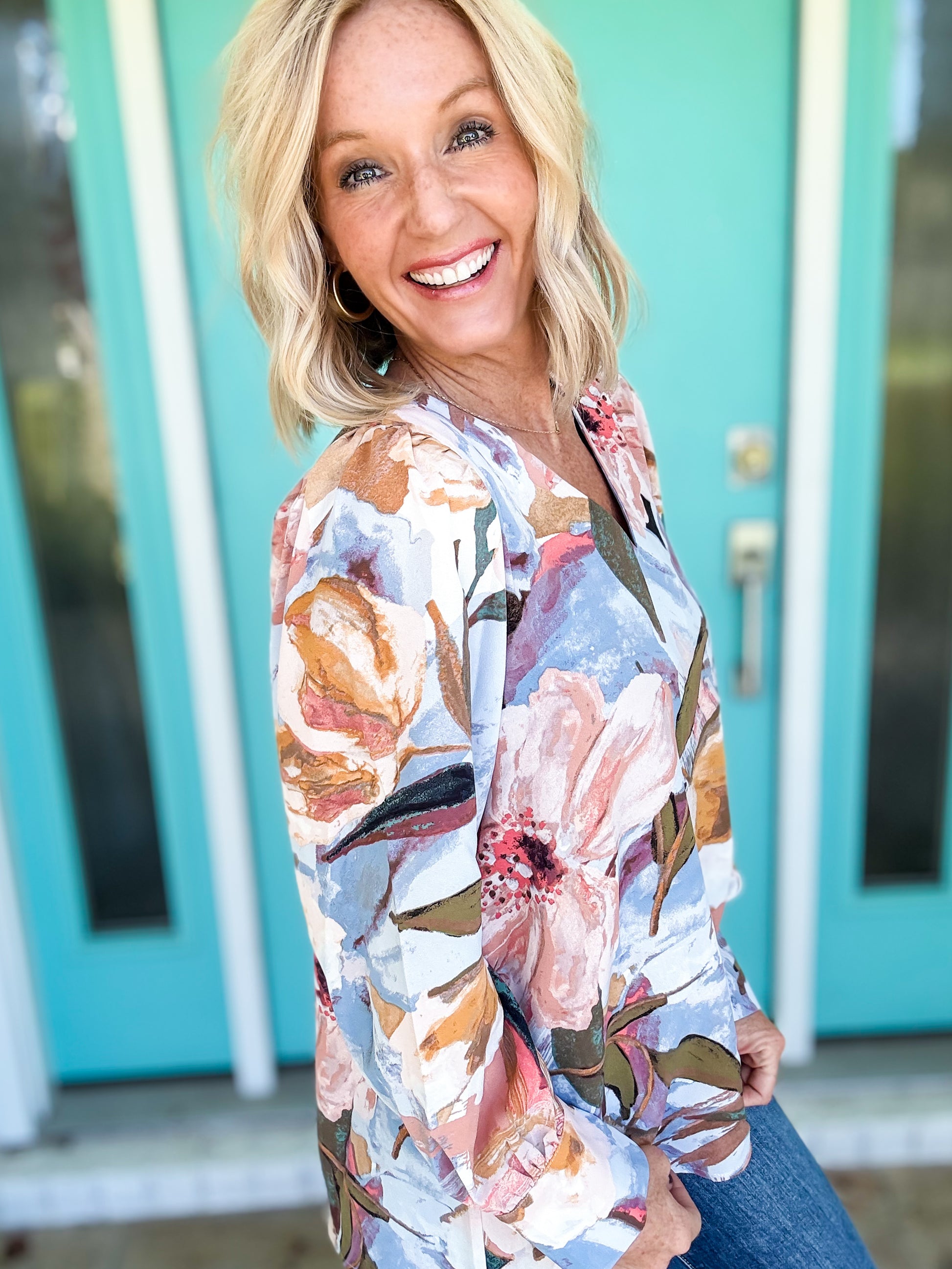 Make a statement in the Bloom Boldly Top, featuring long sleeves and a vibrant, oversized floral print. This eye-catching design combines comfort with style, perfect for brightening your wardrobe and turning heads wherever you go. Embrace bold elegance while enjoying a flattering fit that suits any occasion.