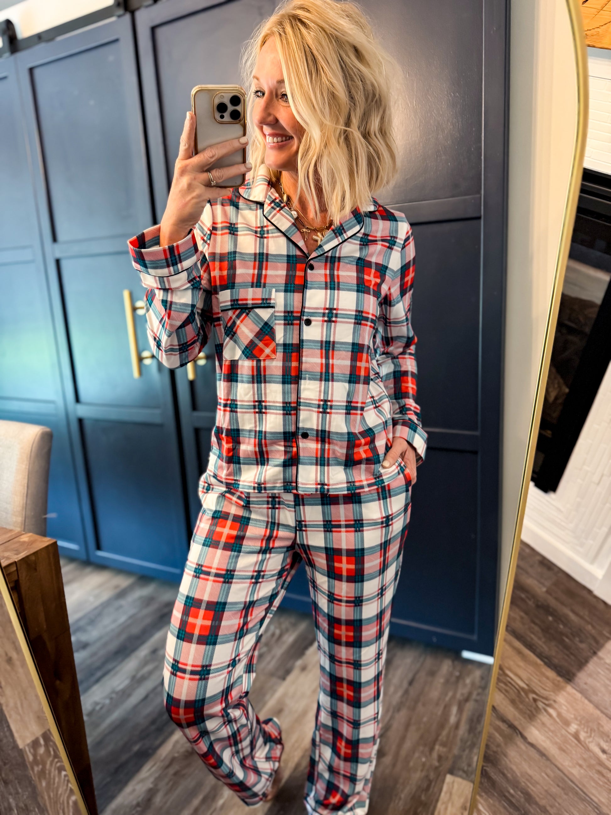 Cozy up this holiday season in our Checked Twice Lounge Set, featuring a festive plaid pattern that brings Christmas charm to your downtime. Crafted from soft, breathable fabric, this matching set combines comfort with seasonal style—perfect for lazy mornings, movie nights, or lounging by the fire. The relaxed fit ensures all-day wearability, while the classic plaid design works beautifully beyond the holidays. Treat yourself to the ultimate comfort essential that makes staying home feel like a celebration.