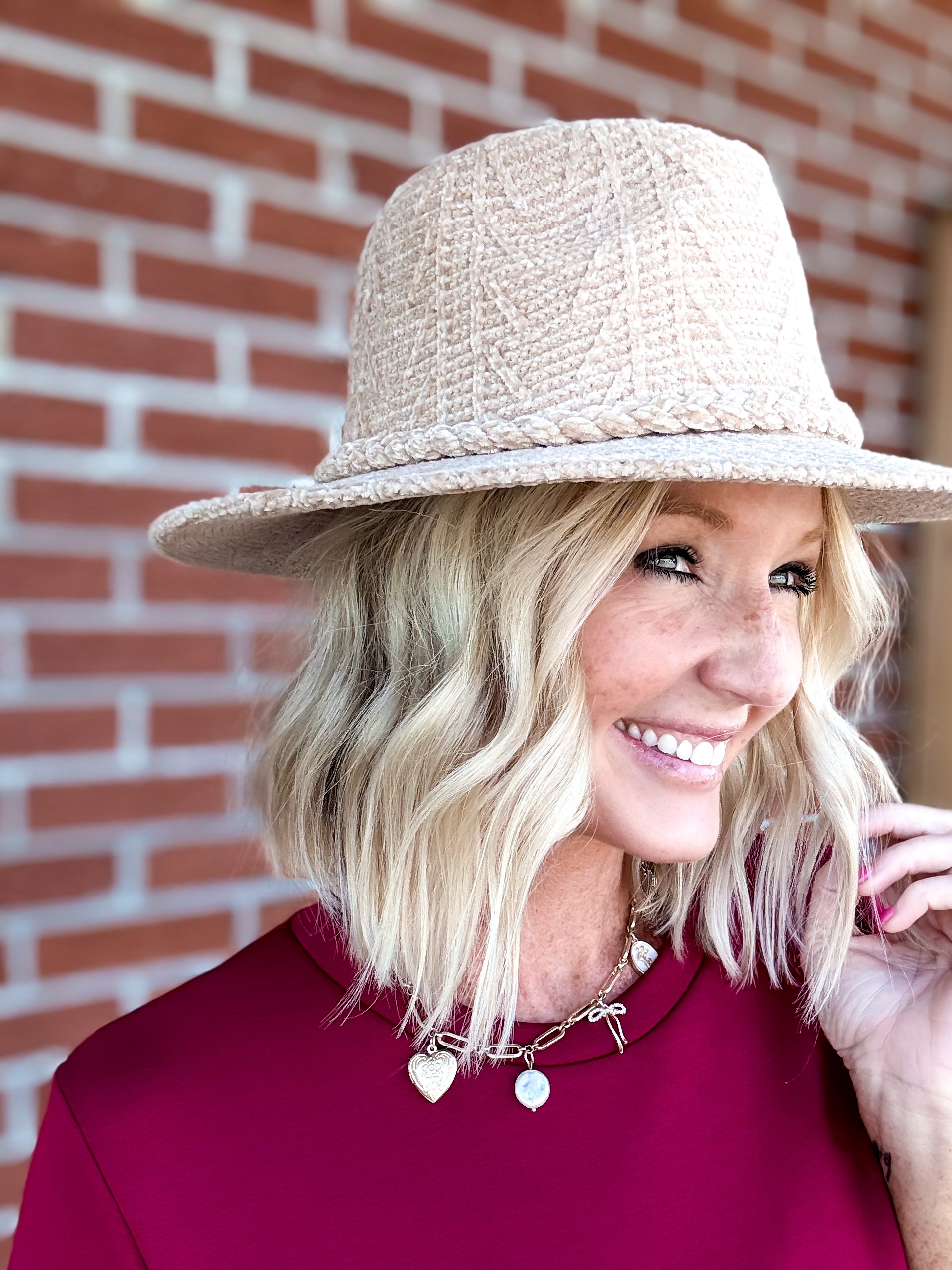 Bold and daring, this fedora hat embodies a sophisticated chenille pattern fedora design. A versatile fedora hat that's perfect for any occasion, adding a touch of elegance and style to any outfit.