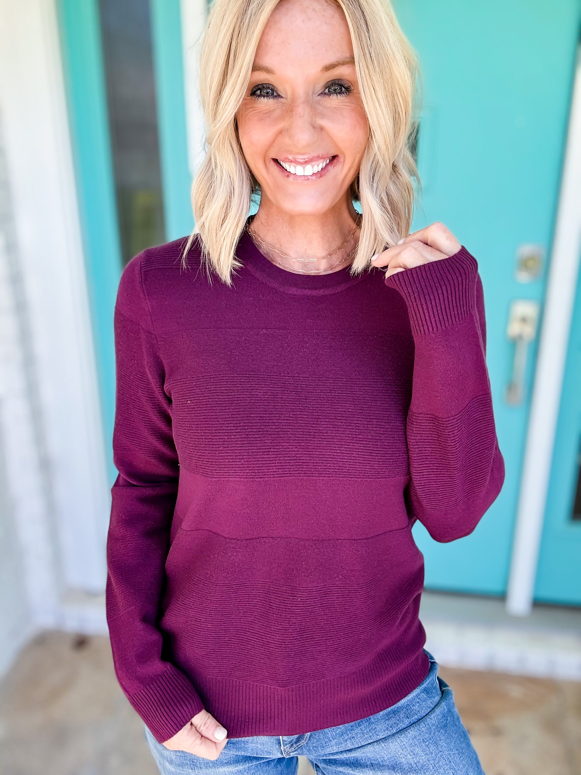 Embrace warmth and style with the Cozy Lines Sweater. Its textured stripes add subtle dimension creating a look that’s both classic and contemporary. Perfect for layering or wearing on its own, this sweater promises cozy comfort while elevating your casual wardrobe effortlessly.
