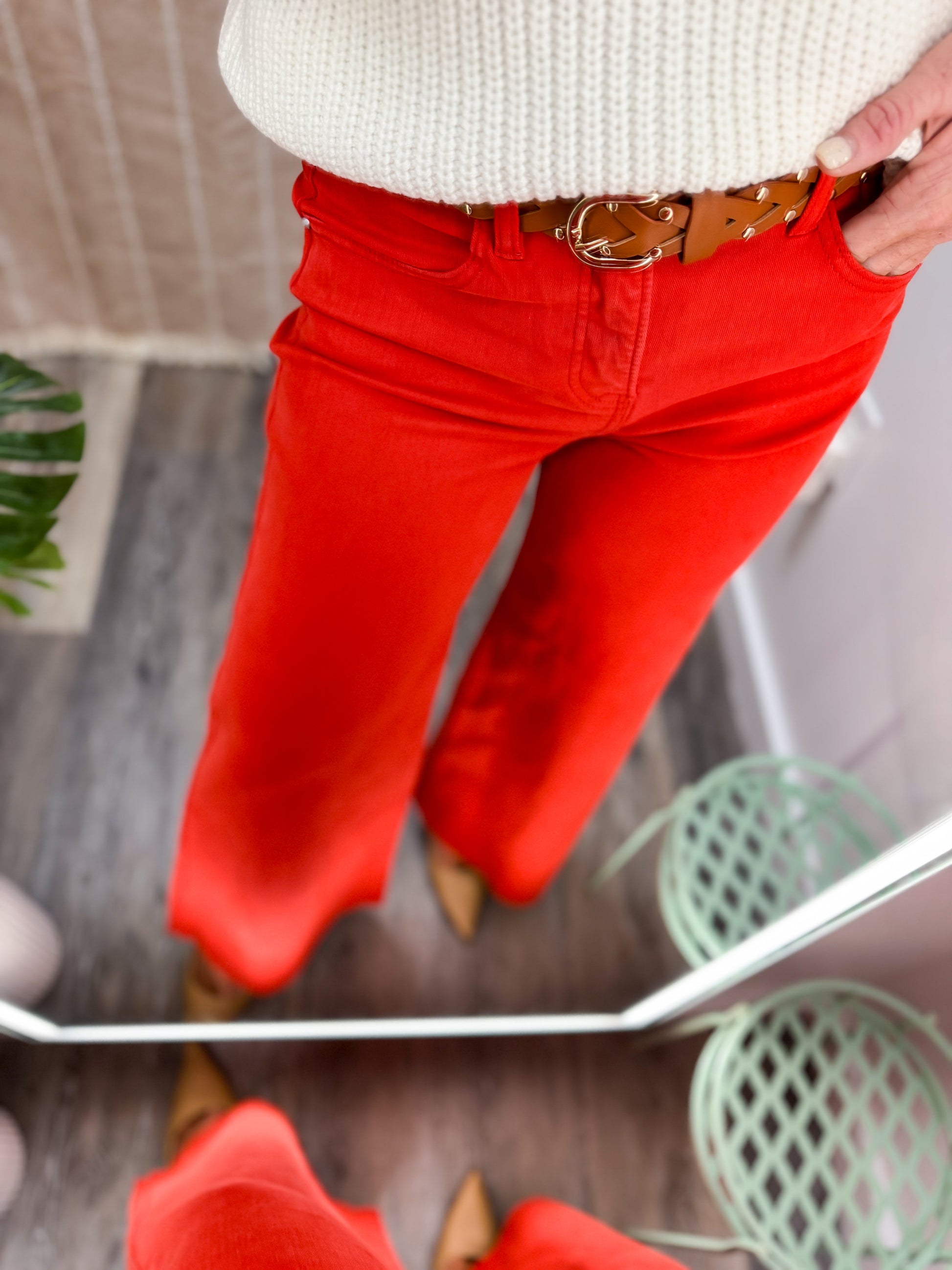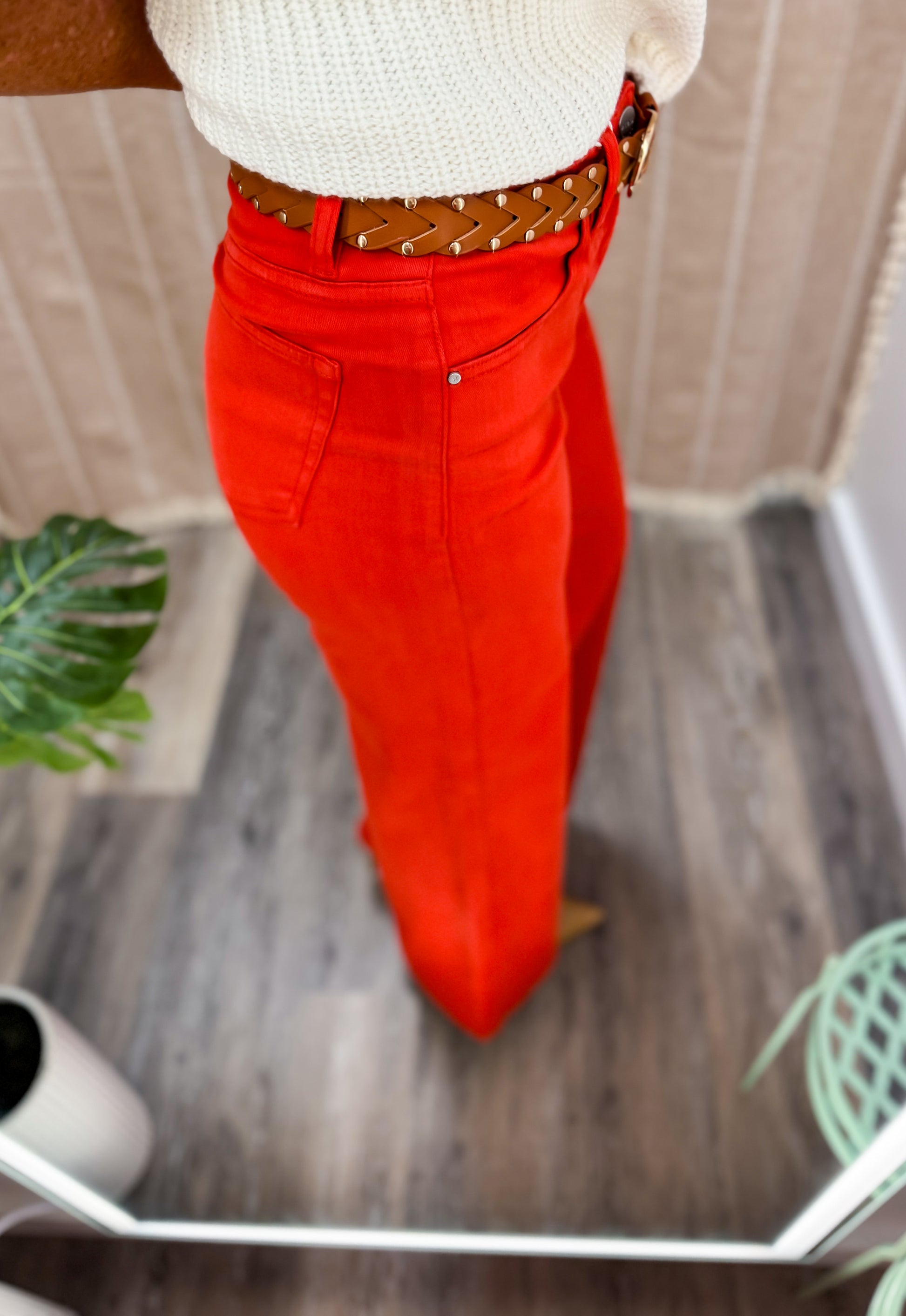 Elevate your casual wardrobe with these stunning Risen palazzo jeans in a bold red hue. Designed with a relaxed, wide-leg silhouette, these jeans offer effortless style and all-day comfort. The vibrant red shade makes a statement while remaining versatile enough to pair with neutral tops or coordinate with complementary colors. Crafted by the trusted Risen brand, known for quality denim construction, these palazzo jeans deliver the perfect blend of fashion-forward design and wearable elegance. Whether you're heading to a celebration or upgrading your everyday look, these jeans are your go-to piece for turning heads and feeling confident.