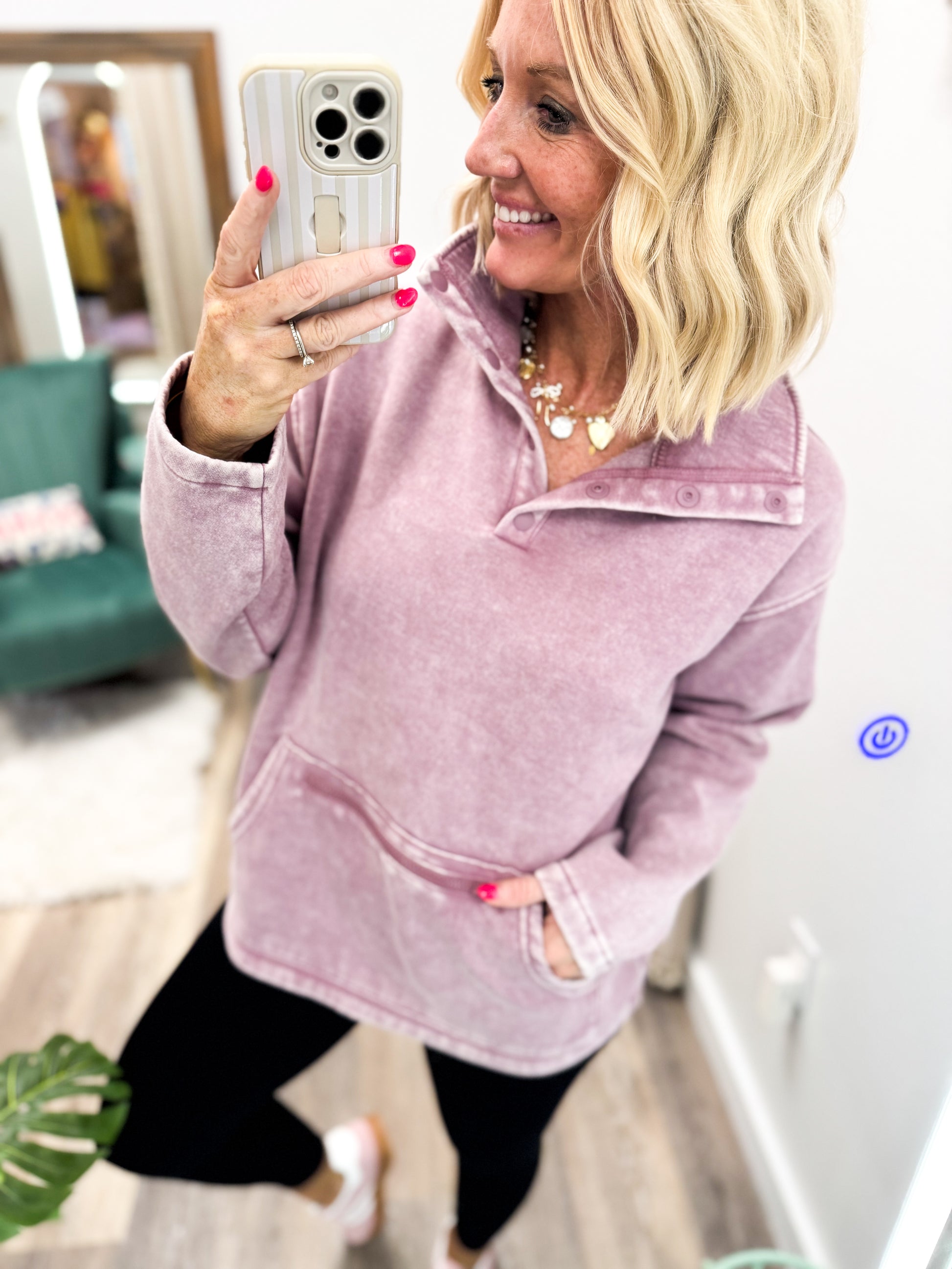 Stay cozy and stylish with the Fireside Fleece Pullover. Crafted from soft, fleece-washed fabric, it features a high neck for added warmth and a kangaroo pocket to keep your hands comfortable or store essentials. Perfect for layering on chilly days, this pullover combines comfort and practicality effortlessly.