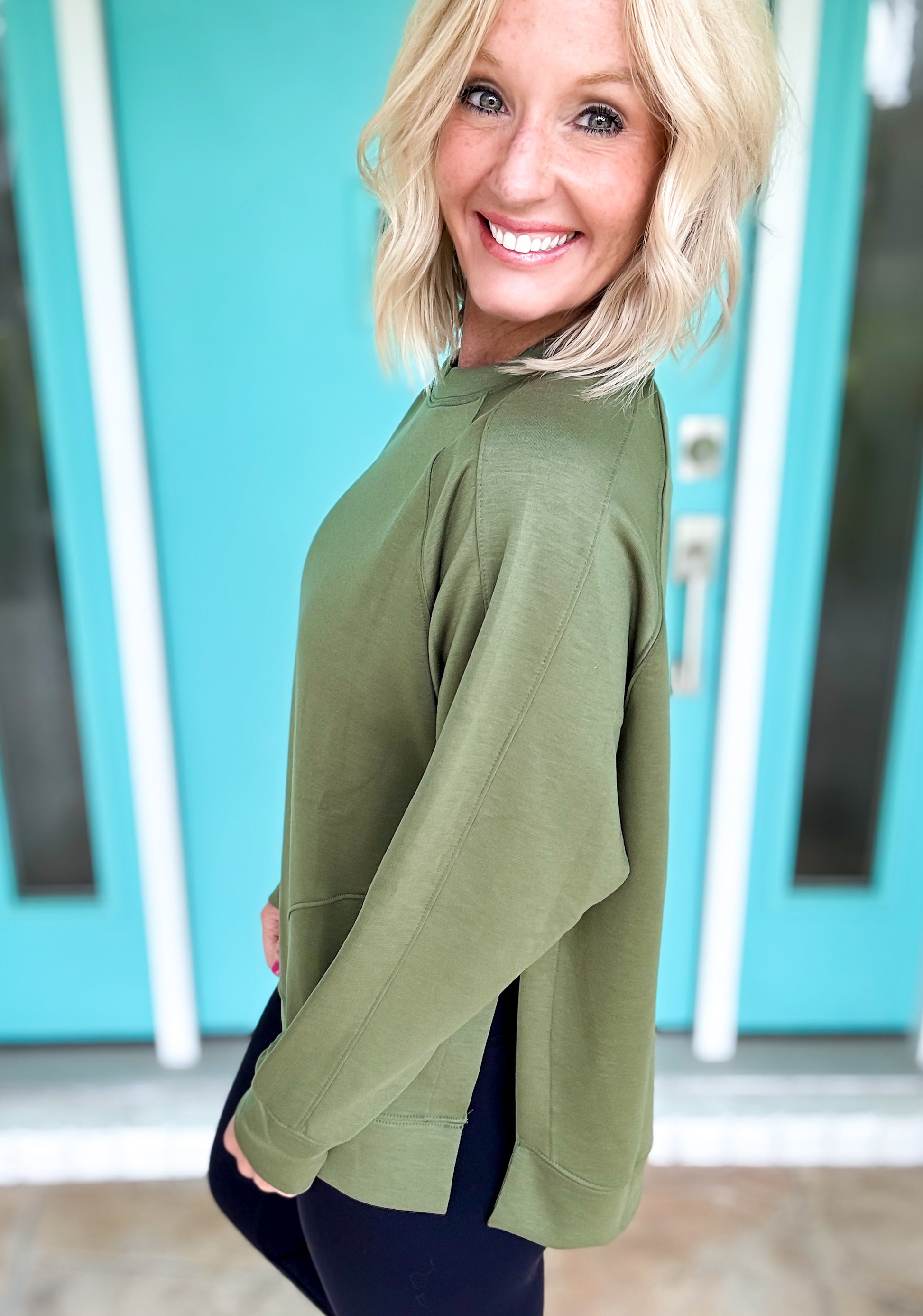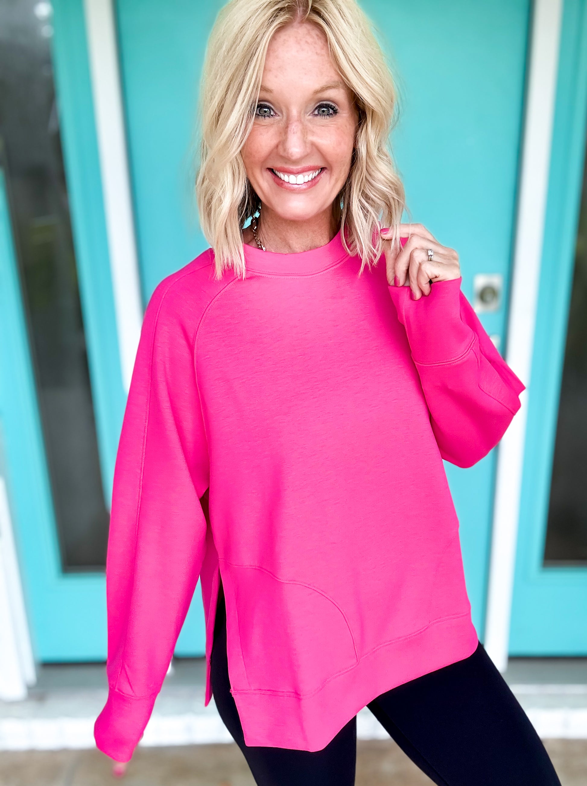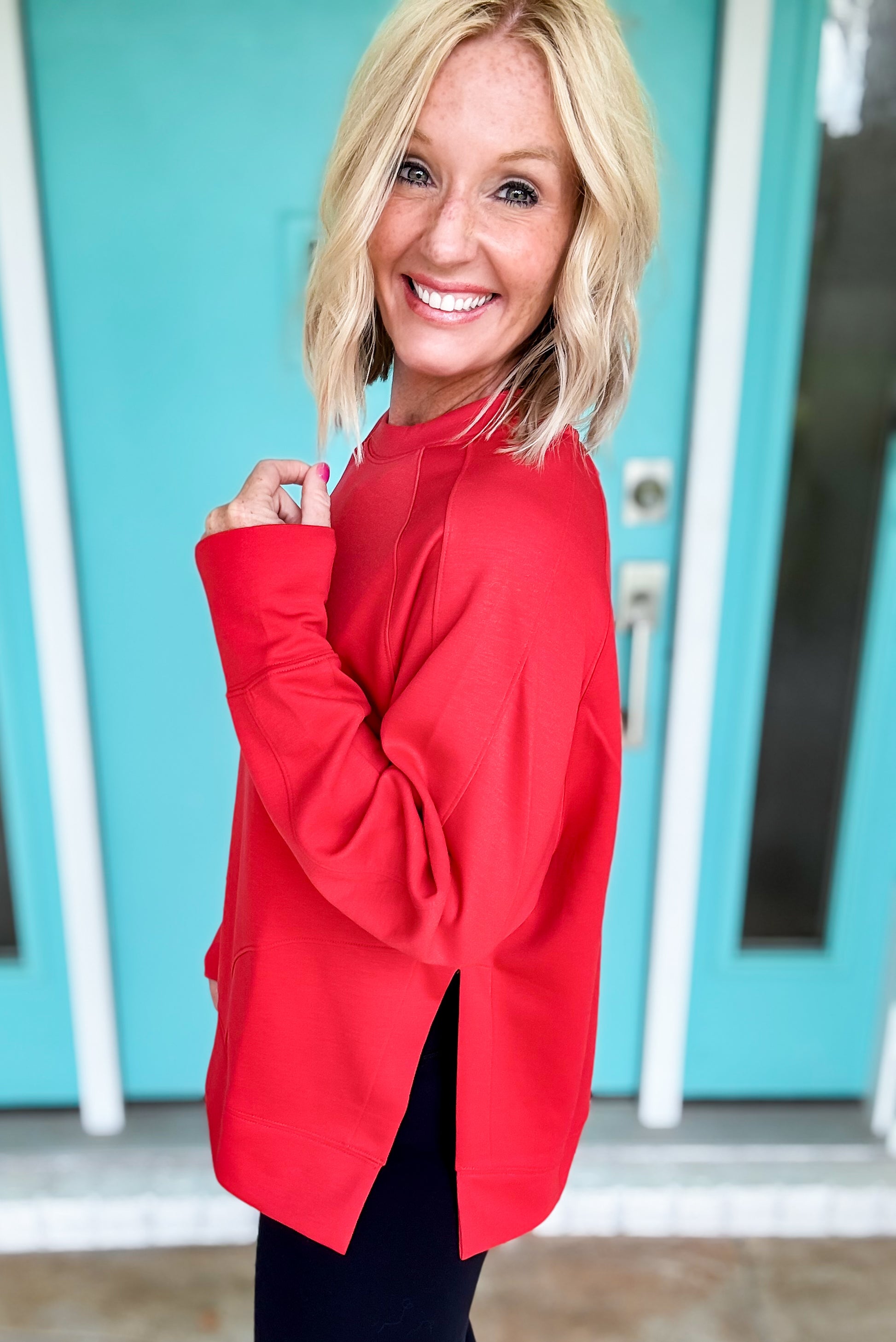 Elevate your casual wardrobe with the Luxe Side Slit Scuba Pullover. Crafted from smooth scuba fabric, this round neck pullover offers a sleek, structured fit that moves with you. Side slits add a modern touch and enhance comfort, making it perfect for layering or wearing on its own. Experience effortless style and all-day ease in one versatile piece.