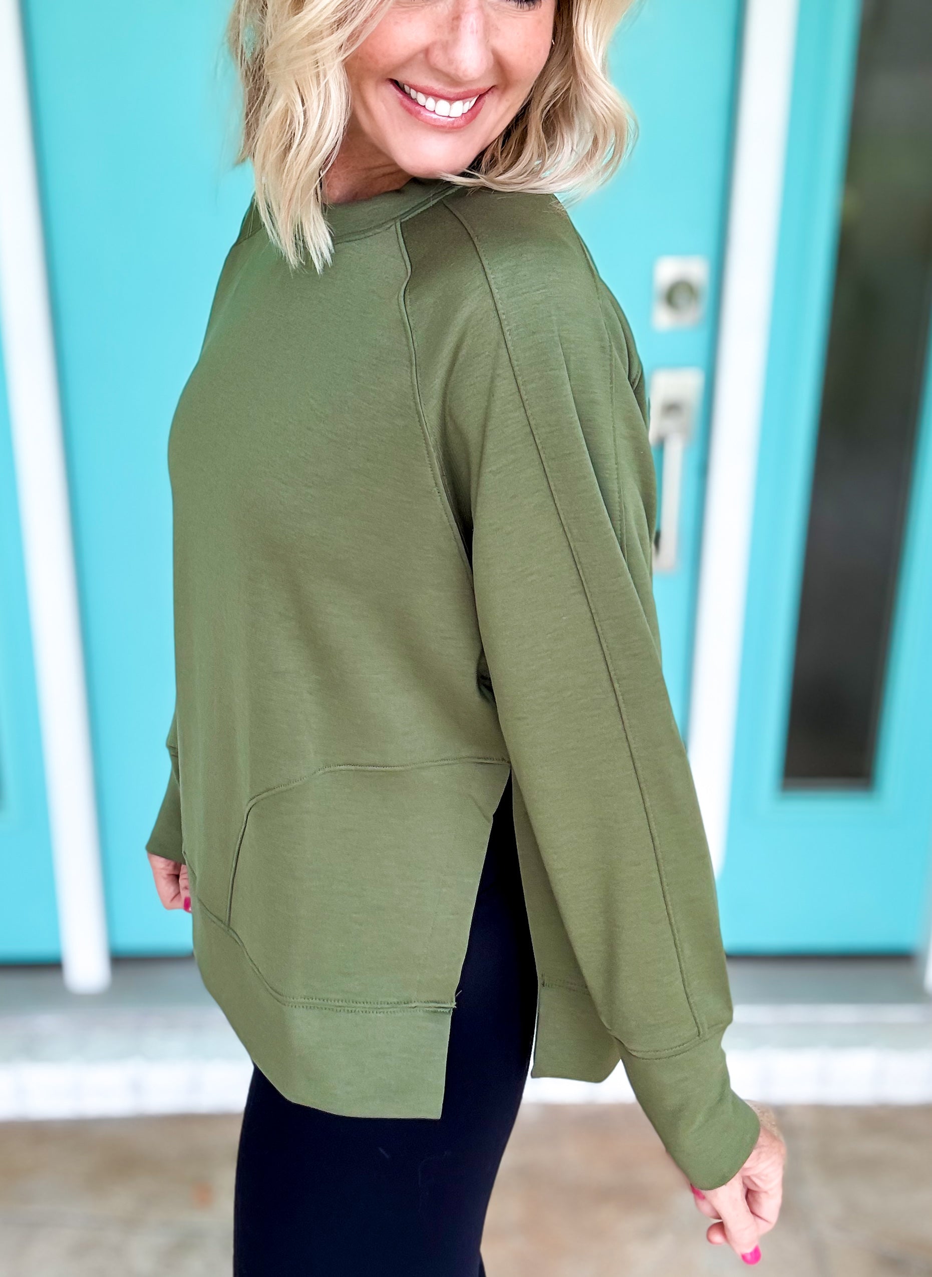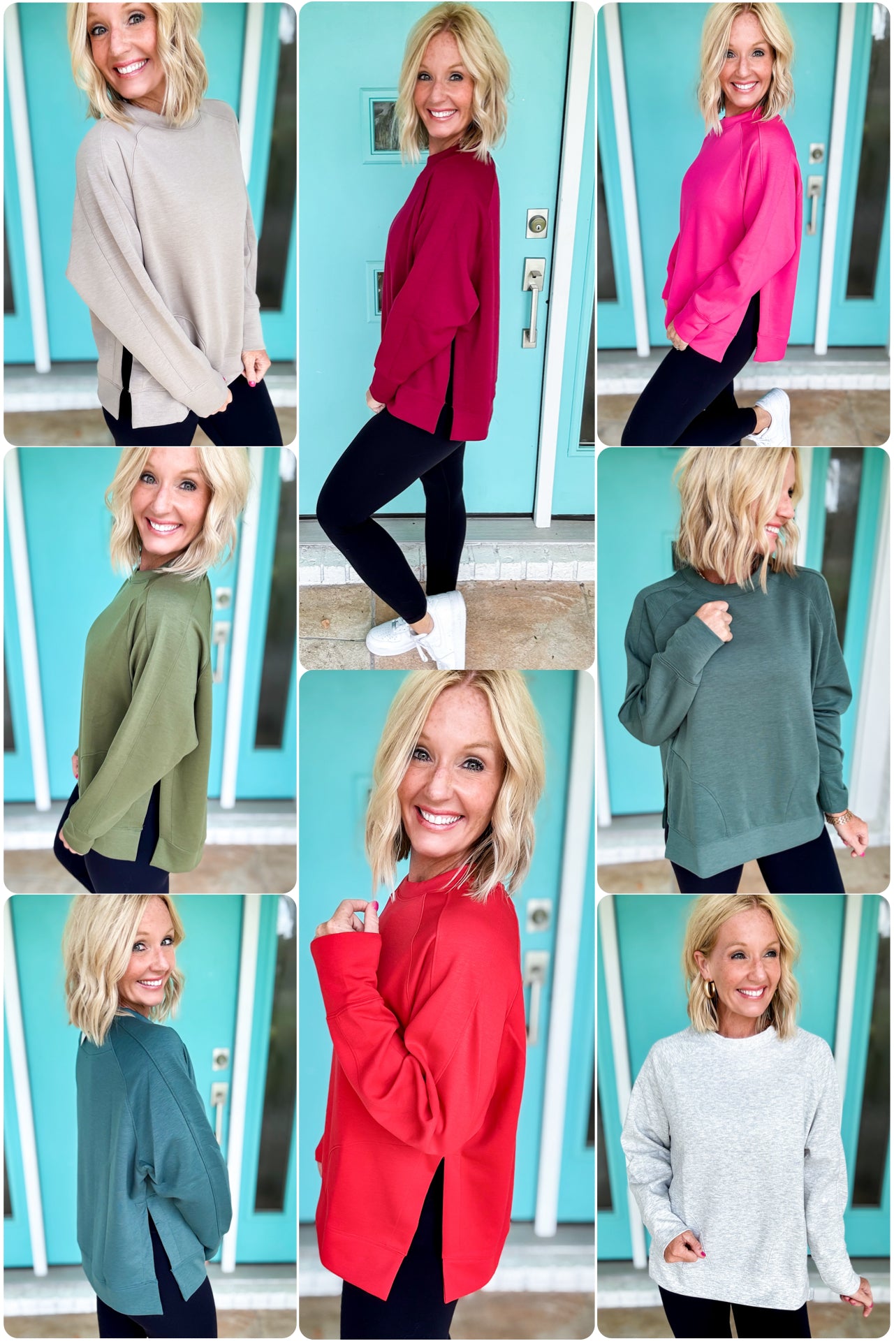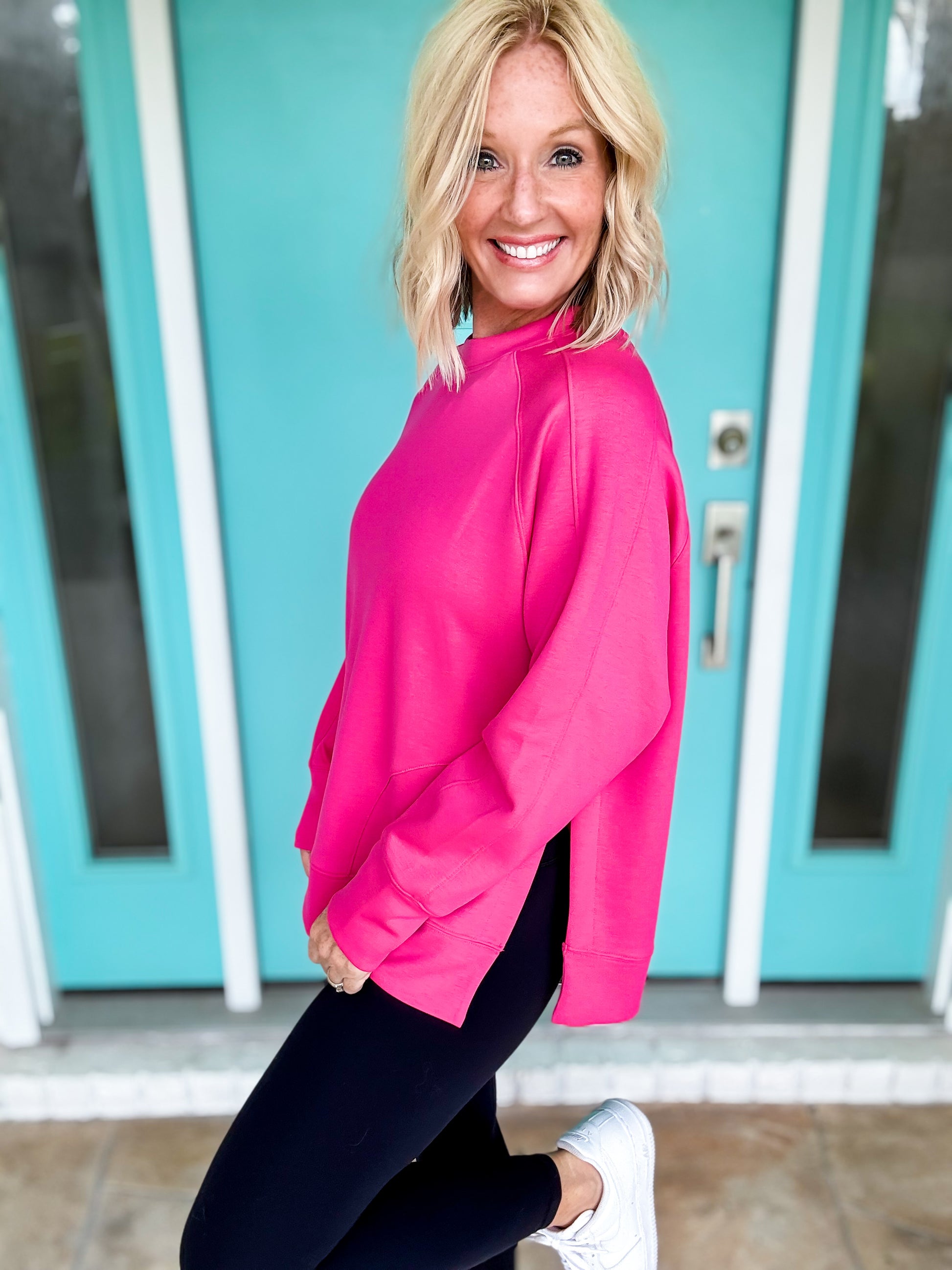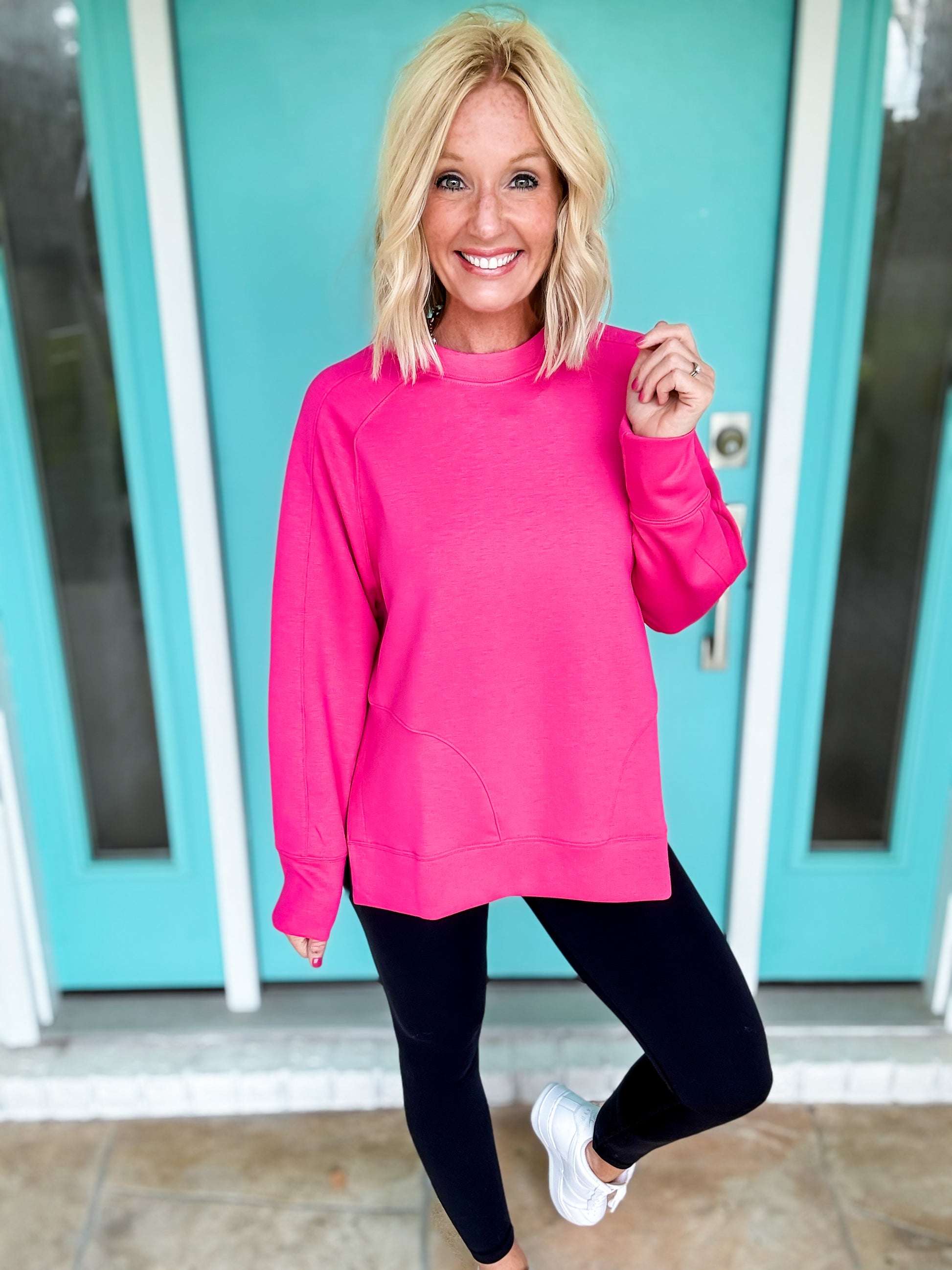 Elevate your casual wardrobe with the Luxe Side Slit Scuba Pullover. Crafted from smooth scuba fabric, this round neck pullover offers a sleek, structured fit that moves with you. Side slits add a modern touch and enhance comfort, making it perfect for layering or wearing on its own. Experience effortless style and all-day ease in one versatile piece.