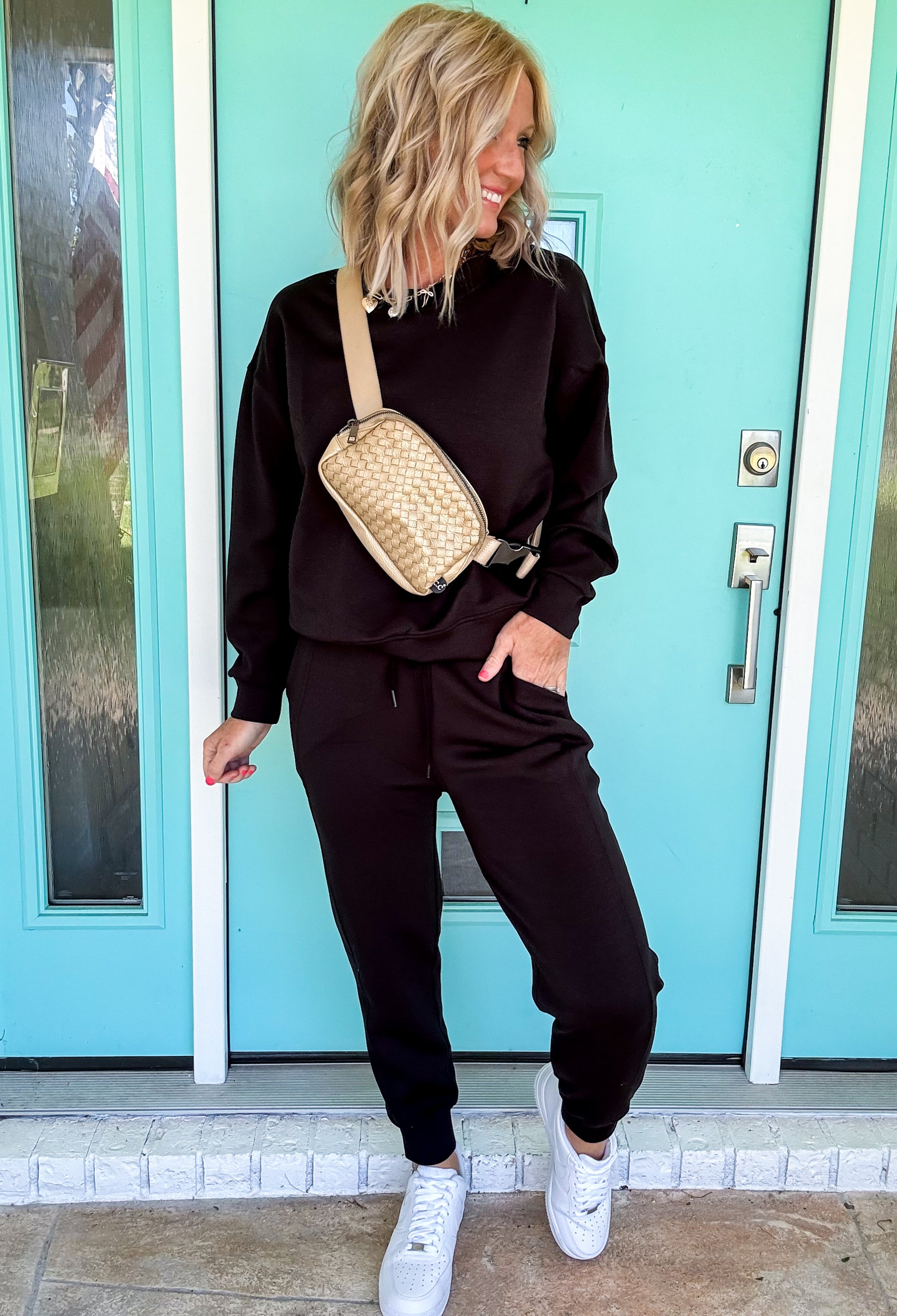Elevate your casual wardrobe with the Off-Duty Scuba Joggers Set, featuring a cozy crewneck pullover and matching joggers crafted from soft, breathable fabric. Designed for ultimate comfort and effortless style, this set is perfect for lounging at home or running errands with confidence. The sleek fit and modern design ensure you look polished while staying relaxed all day long. Experience the perfect blend of comfort and fashion with this versatile set that keeps you ready for any casual occasion.