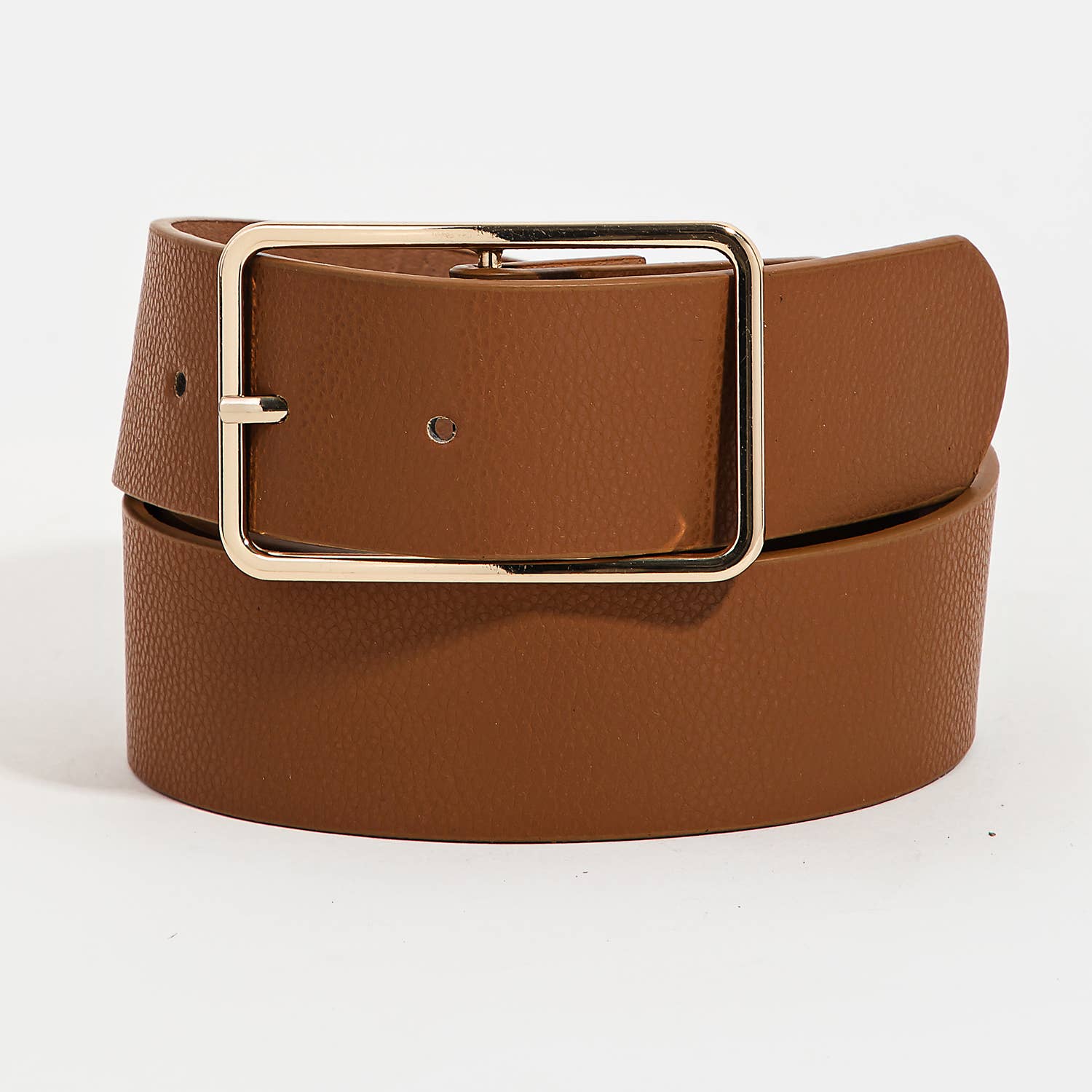 Elevate your everyday look with this sophisticated rectangle cutout buckle belt. Crafted from vegan leather in a rich brown tone, it's the perfect blend of edgy and elegant. The geometric buckle design adds an instant dose of modern flair to any outfit—dress it up with a blazer or keep it casual with your favorite jeans. Versatile, cruelty-free, and undeniably chic, this belt is your new wardrobe essential.
