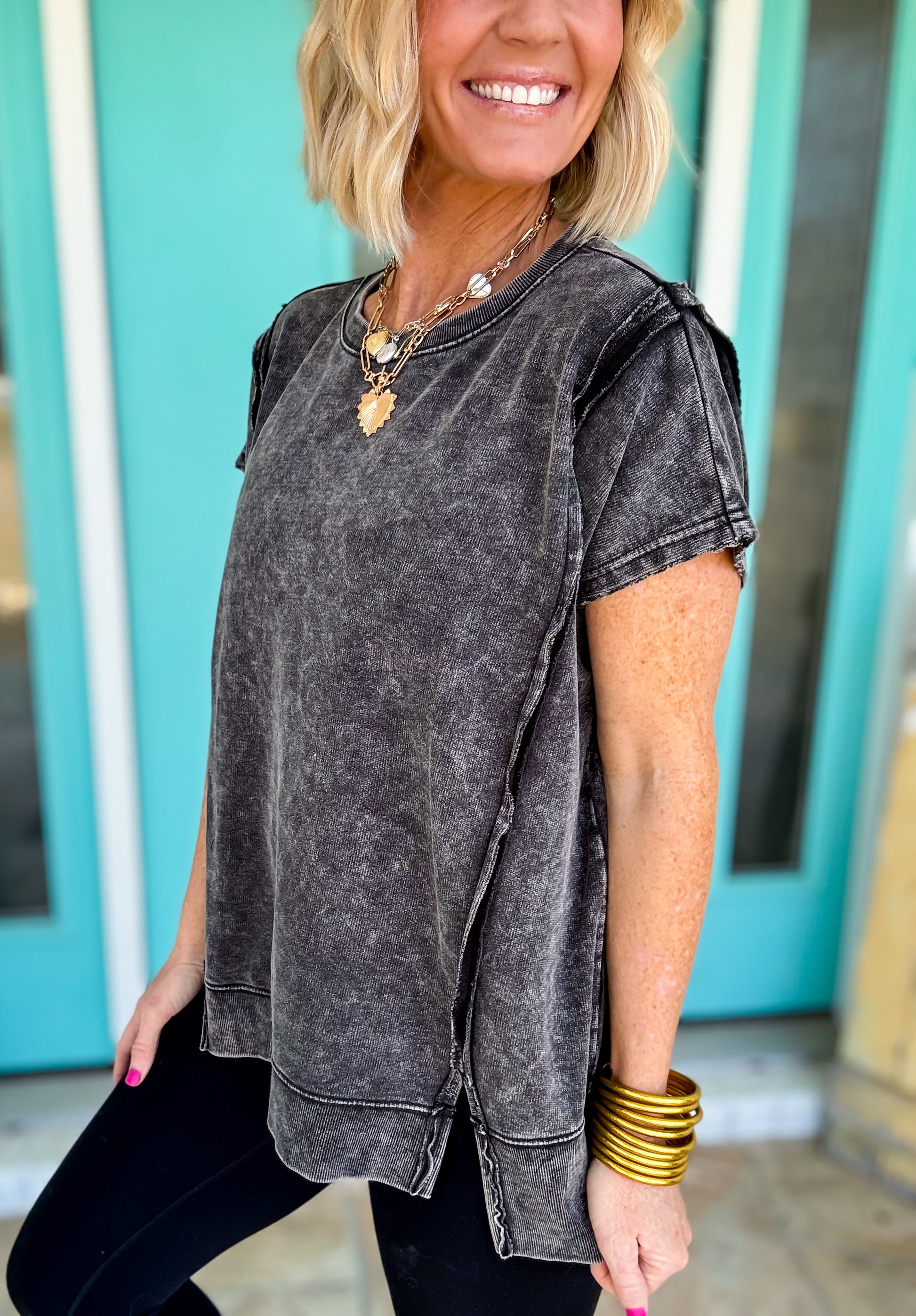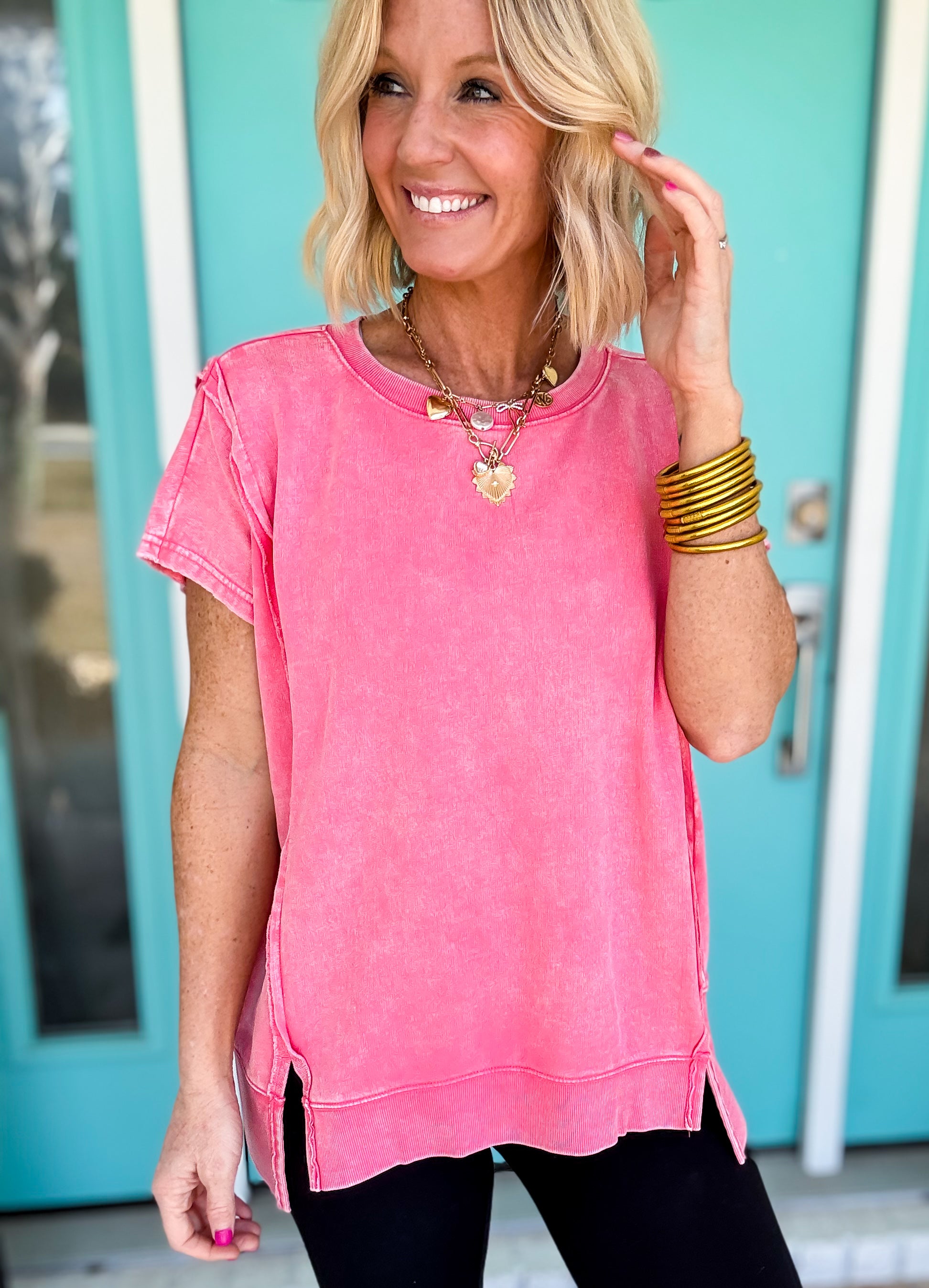 Get ready to turn heads in our Sweet Tart Acid Washed Top! This playful piece features ultra-soft french terry that feels amazing against your skin, paired with an eye-catching acid wash finish that screams vintage cool. The relaxed fit makes it perfect for lazy days, coffee runs, or hanging with friends. Layer it, tie it, or wear it solo—this versatile top is your new go-to for effortless style. Sweet, tart, and totally fun!