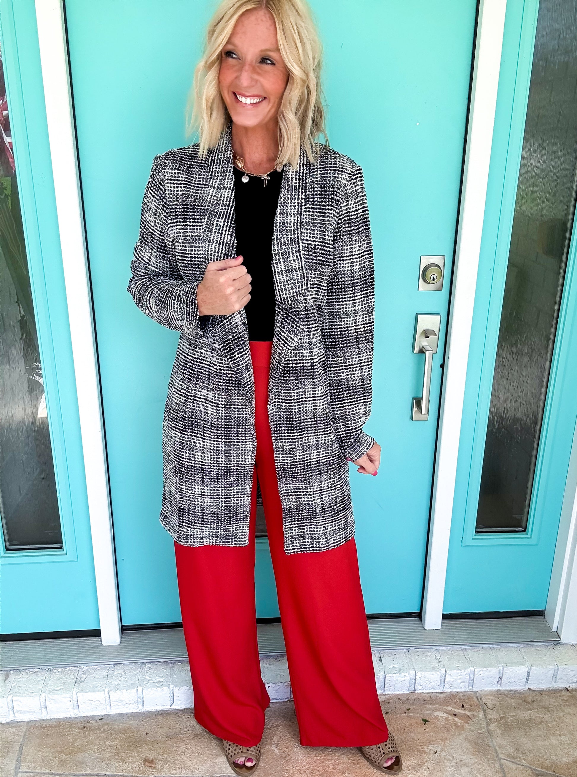 Elevate your wardrobe with the Timeless Tweed Blazer, designed for both style and comfort. Crafted with a subtle stretch, this open-front blazer offers a flattering fit that moves with you throughout the day. Its classic tweed texture adds sophistication to any outfit, making it perfect for work or weekend wear. Experience effortless elegance and versatility in one essential piece.