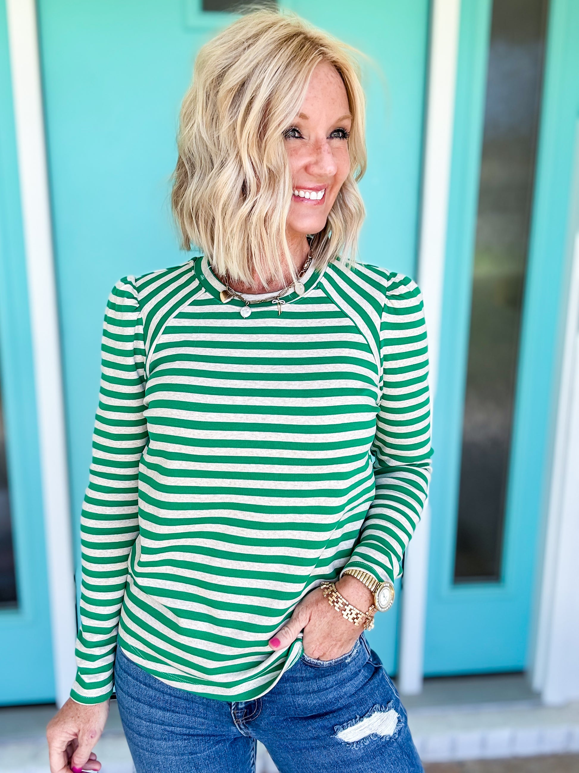 Elevate your wardrobe with the Uptown Stripe Top, featuring a classic crew neck and long sleeves for a polished look. Its refined striped pattern adds a touch of sophistication, making it perfect for both office days and evening outings. Comfortable yet dressy, this top effortlessly blends style and versatility to keep you looking sharp wherever you go.