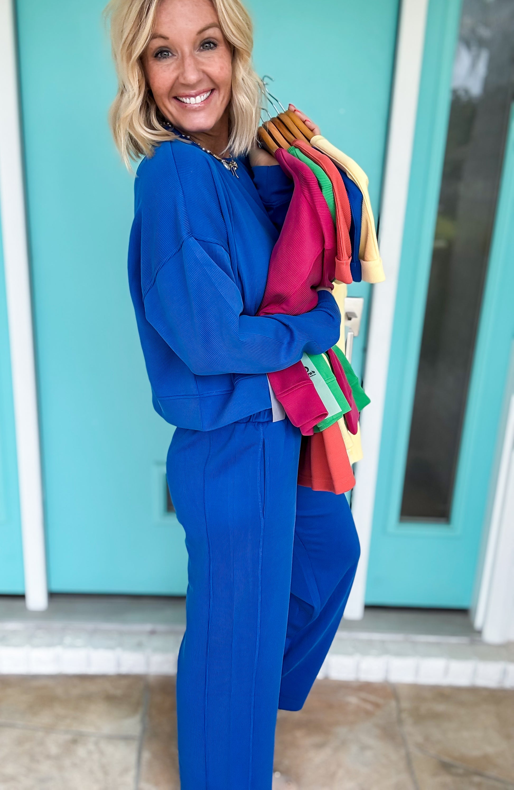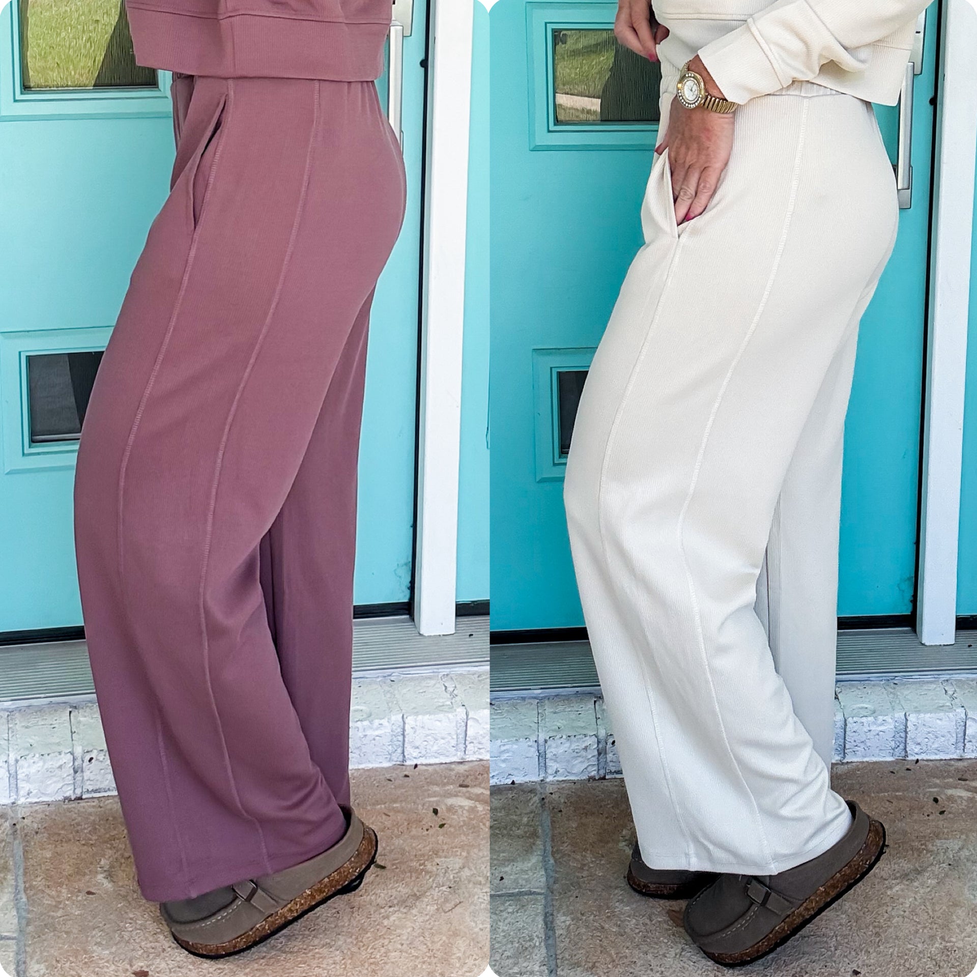 Experience ultimate comfort and style with our Wide Leg Luxe Ribbed Pants. Crafted from soft scuba fabric, these athleisure pants offer a flattering wide-leg fit and a textured ribbed design that moves with you. Perfect for lounging or casual outings, they combine breathable stretch with a chic silhouette to keep you looking effortlessly polished all day. Elevate your wardrobe with these versatile pants that blend comfort and fashion seamlessly.