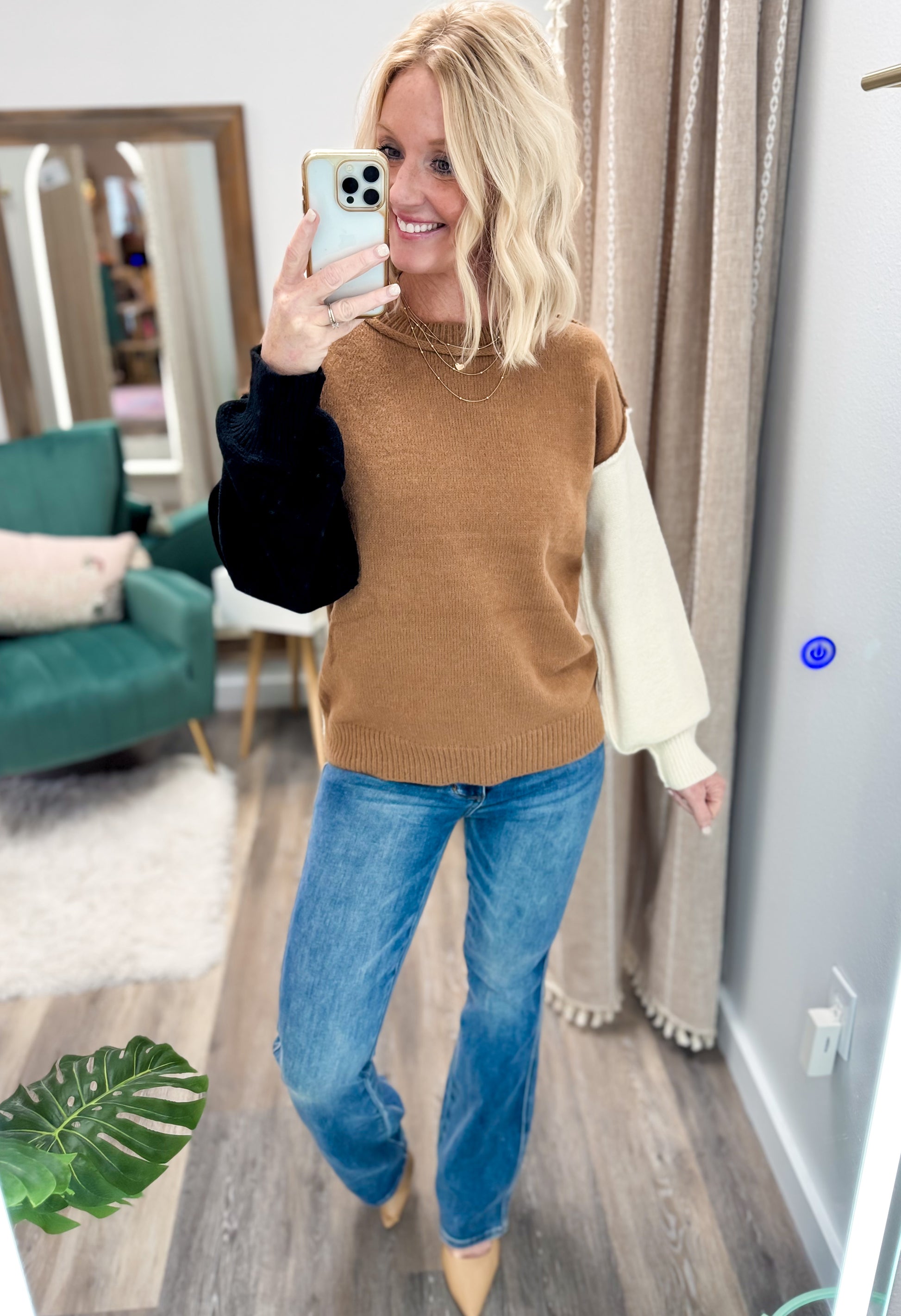 Struggling with fit or wondering how it looks "in real life?" Jump on our app to view quick but detailed fit videos for every single item. I personally try on each article of clothing and give my sizing suggestions and more in depth detail of the item/material, plus styling tips!